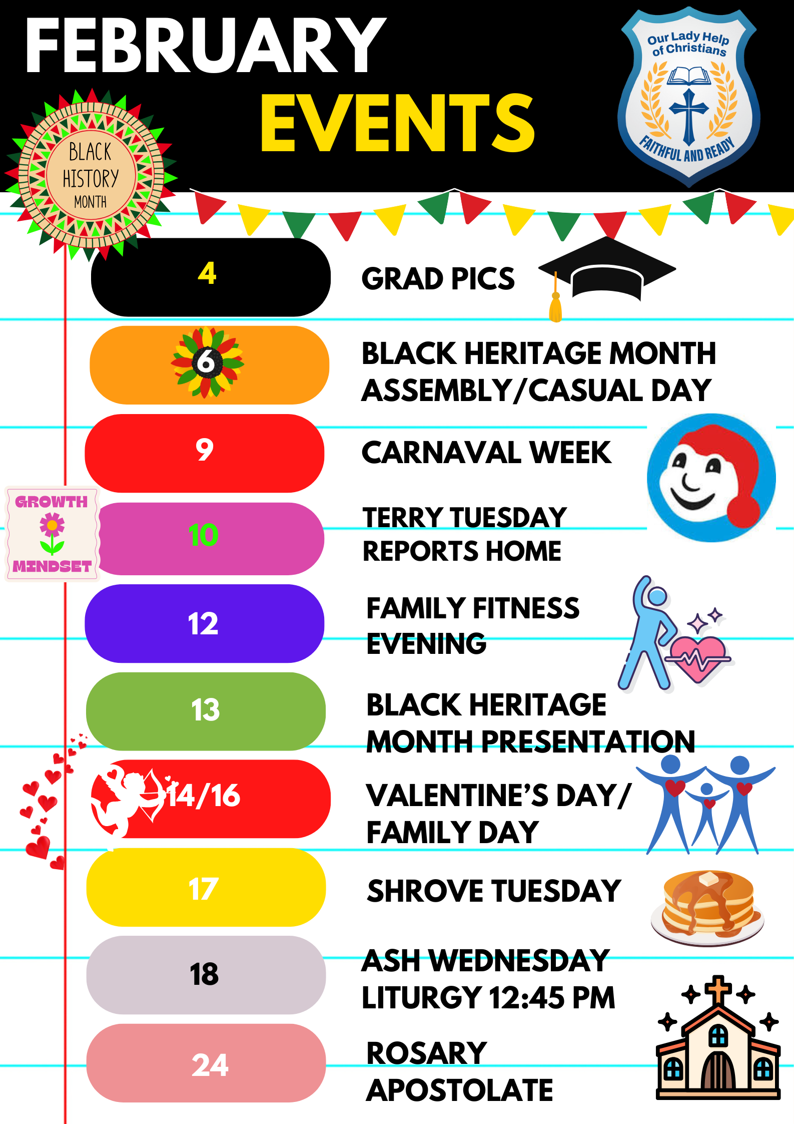 We are so blessed that our Carnaval tradition continues at OLHC, bringing joy, culture, and community spirit to our school. A heartfelt thank you to Madame Lopes and Madame Lombardo for their leadership and dedication in helping to bring this special celebration to life for our students. The week of February 9th will be filled with fun themes and ... Continue reading "Carnaval Fun"
