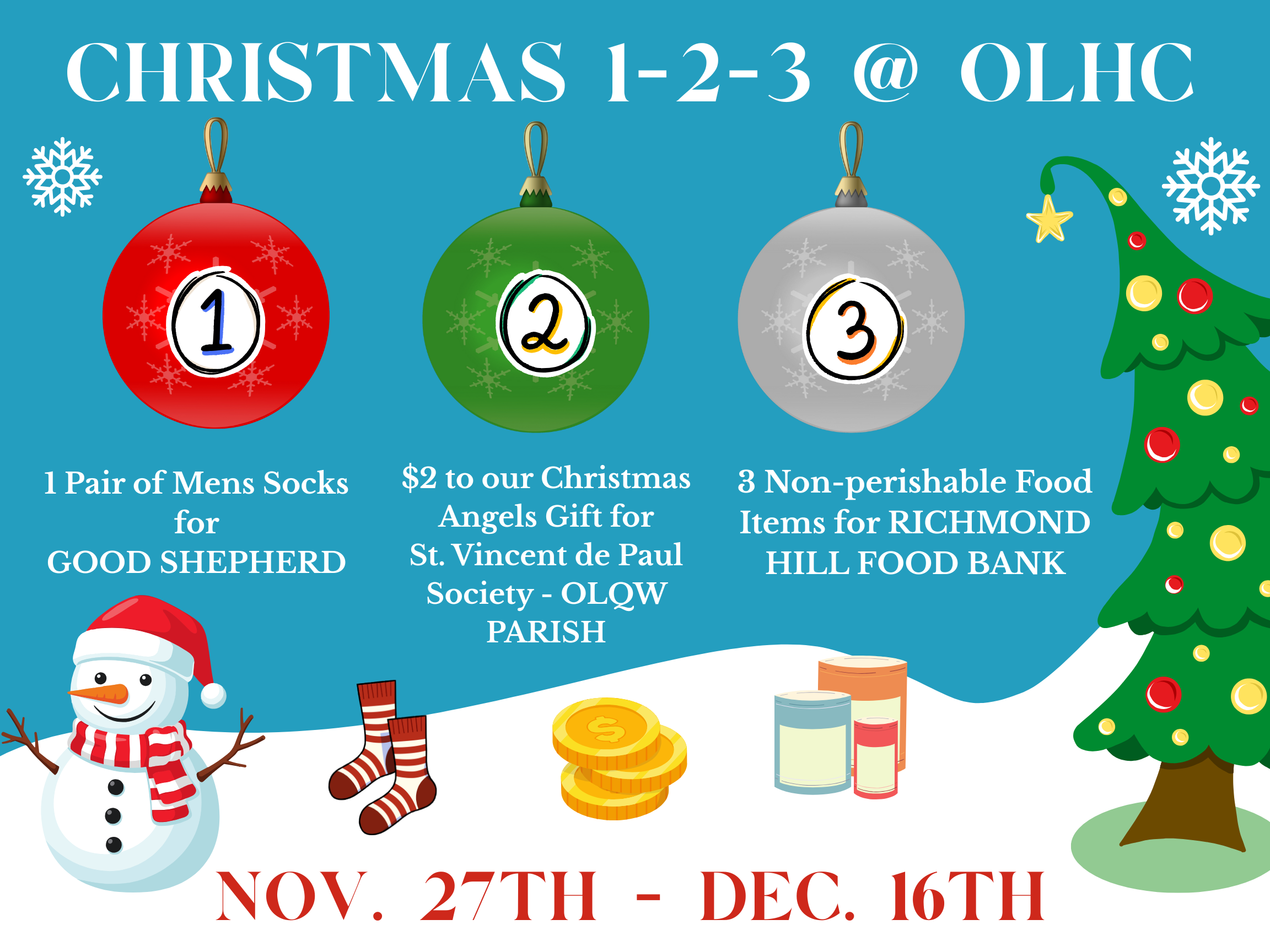 Our Christmas 1 2 3 Drive is a cherished tradition at OLHC. From November 27th to...